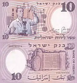 | 5 جنيهات إسرائيلية | 150X75 مم | أزرق | ألبرت أينشتاين | مركز سوريك للبحوث النووية | ![]() | 13 يناير، 1972 | 31 مارس، 1984 |