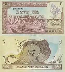 | 5 جنيهات إسرائيلية | 140X78 مم | بني | منظر من النقب، وآلة زراعية | لوحة تجريدية | ![]() | ||