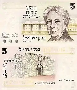 | 5 جنيهات إسرائيلية | 128X76 مم | بني | هنريتا زولد ومركز هداسا الطبي | باب الأسباط | ![]() | 11 مارس، 1976 | 31 مارس، 1984 |