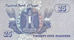 - عملات معدنية متداولة فئات 25 قرشاً، 50 قرشاً، 1 جنيهاً.