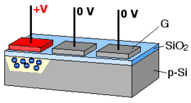 ينقل الضوء الساقط عن طريق التأثير الكهرضوئي الداخلي طاقته إلى الإلكترونات في شبه الموصل. وتنشأ تحت هذا التأثير إلكترونات حرة (سالبة) و فجوات موجبة الشحنة، وتبقى معزولة عن بعضها البعض تحت تأثير جهد كهربائي يمنعها من الاتحاد . ولكن لا تمر الشحنات إلى الخارج في الحال كما هو في ثنائي ضوئي وإنما تتجمع في خلية تخزين فيما يسمى بئر جهد ، وهذا يعمل على تخزين الشحنات مثل عمل لمكثف. ويتناسب عدد الشحنات مع كمية الضوء الساقطة على السي سي دي عندما تبدأ قراءة المخزون، قبل أن يصلها جهد محو الثنائي الضوئي لمحوها.