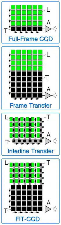 - سي سي دي ناقل الصورة والأسطر الجانبية( Frame-Interline-Transfer-CCD (FIT .