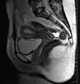 رنين مغناطيسي سهمي يعرض مكان المهبل، وعنق الرحم، والرحم