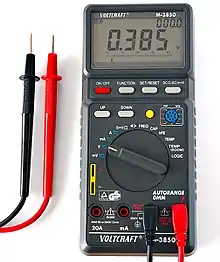 أداة قياس الجهد الكهربائي يقال لها الفولتميتر وهي كلمة مركبة من فولت، وهي وحدة قياس الجهد الكهربائي، ومتر، وهي وحدة قياس، وركبت الكلمتان مع بعضهما كي تعطيان معنى جهاز قياس الجهد (الفولتميتر). يوصل الفولتمتير على التوازي في الدائرة المراد قياس الجهد عليها، ولكي لا يؤثر جهاز القياس في الدائرة المقاسة، يجب أن تكون مقاومة الفولتمتير الداخلية أكبر ما يمكن.