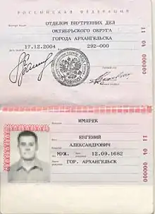 ![]() غلاف جواز السفر الداخلي الروسي | ||||