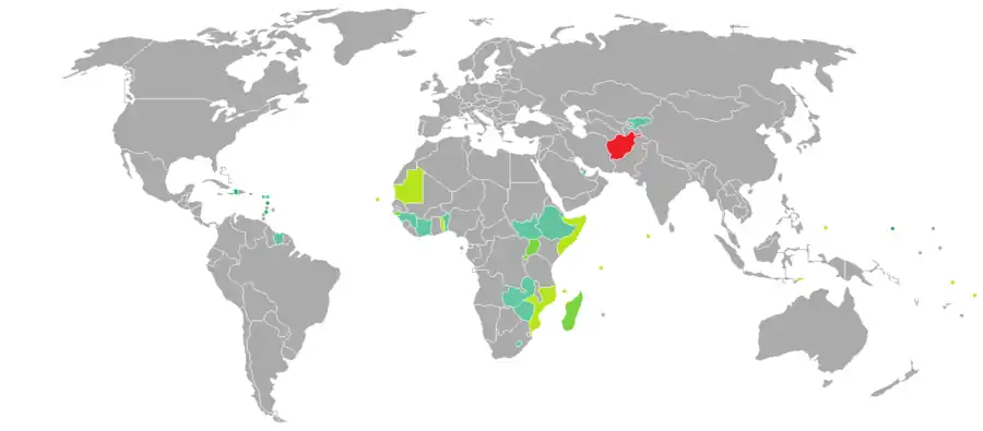 البلدان والأقاليم التي لا تفرض تأشيرة أو تطلب تأشيرة دخول عند الوصول للجهة، لحاملي جوازات السفر الافغانية العادية.