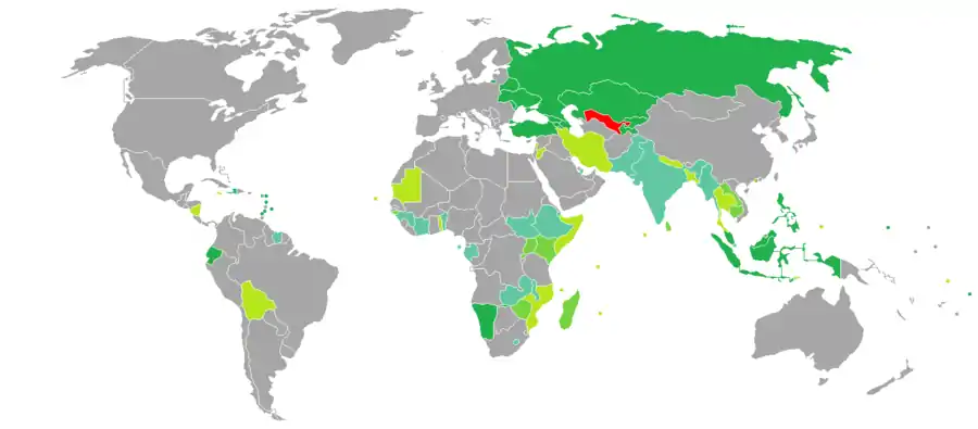 البلدان والأقاليم التي لا تفرض تأشيرة أو تطلب تأشيرة دخول عند الوصول للجهة، لحاملي جوازات السفر الاوزبكية العادية.