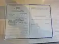 مثال على وثيقة السفر الإسرائيلية الأولى، التي يرجع تاريخها إلى ديسمبر 1948.