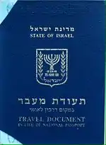 |CitationClass=تم تجاهله (مساعدة) - Israel Government Portal - Travel document (in Hebrew) نسخة محفوظة 10 2يناير6 على موقع واي باك مشين.