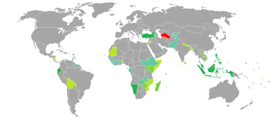 البلدان والأقاليم التي لا تفرض تأشيرة أو تطلب تأشيرة دخول عند الوصول للجهة، لحاملي جوازات السفر التركمانية العادية.