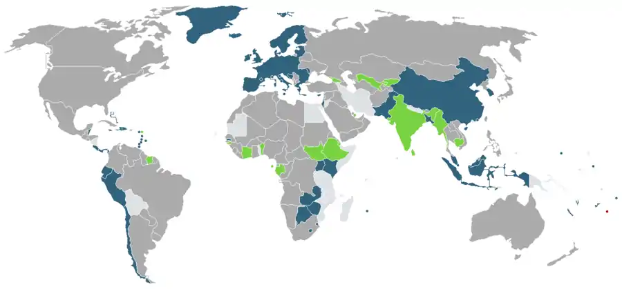 البلدان والأقاليم التي لا تفرض تأشيرة أو تطلب تأشيرة دخول عند الوصول للجهة، لحاملي جواز سفر تونغي.