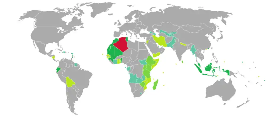 يمكن للجزائريّين حاملي جواز السّفر الجزائري الدّخول إلى أراضي البلدان التّالية بدون تأشيرة: