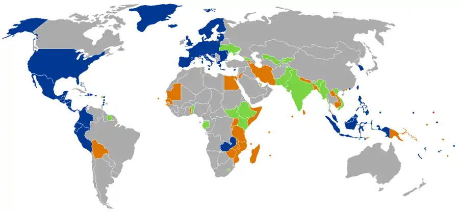 البلدان والأقاليم التي لا تفرض تأشيرة أو تطلب تأشيرة دخول عند الوصول للجهة، لحاملي جواز سفر جزر مارشال.