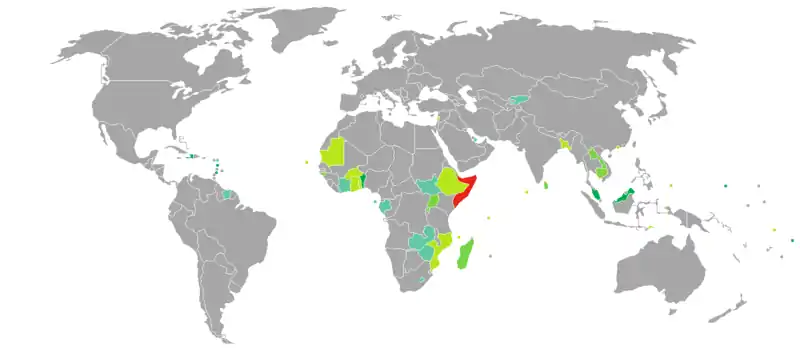 البلدان والأقاليم التي لا تفرض تأشيرة أو تطلب تأشيرة دخول عند الوصول للجهة، لحاملي جوازات السفر الصومالية العادية.