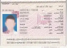 ![]() الغلاف الأمامي لجواز السفر الفلسطيني العادي الجديد | ||||