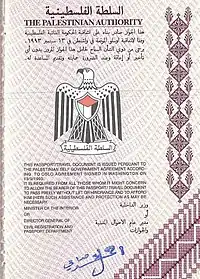 جواز السفر الفلسطيني تُصدره السلطة الوطنية الفلسطينية لتسهيل عملية السفر الدُولية للفلسطينيين بناءً على اتفاقية الحكومة الذاتية الفلسطينية وفقاً لاتفاقية أوسلو المُوقعة في 13 سبتمبر 1993.[1]