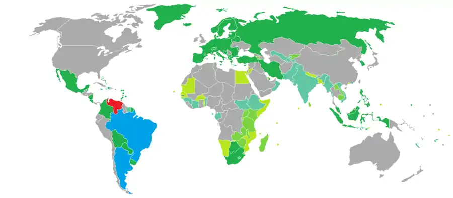 البلدان والأقاليم التي لا تفرض تأشيرة أو تطلب تأشيرة دخول عند الوصول للجهة، لحاملي جوازات السفر الفنزويلية العادية.