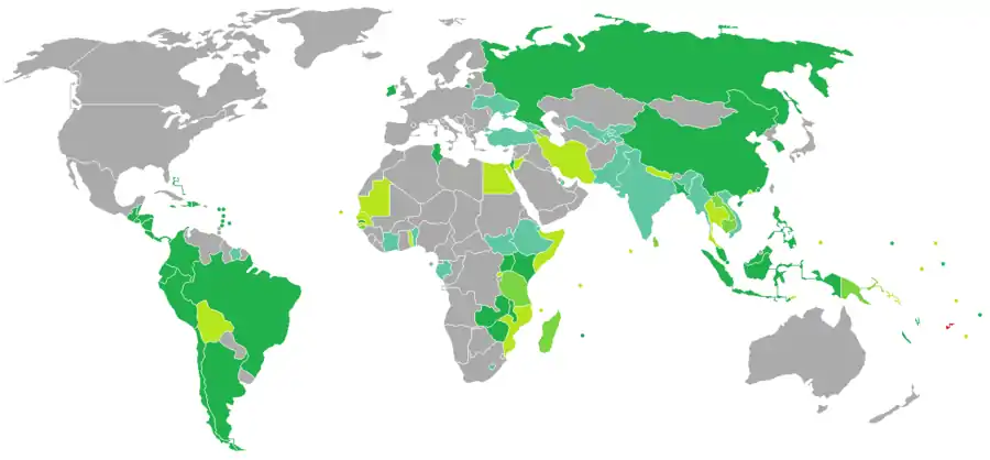 البلدان والأقاليم التي لا تفرض تأشيرة أو تطلب تأشيرة دخول عند الوصول للجهة، لحاملي جوازات السفر الفيجية العادية.