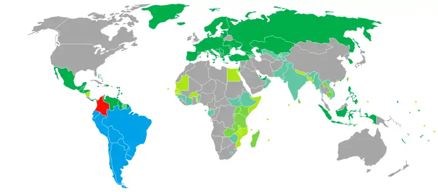 البلدان والأقاليم التي لا تفرض تأشيرة أو تطلب تأشيرة دخول عند الوصول للجهة، لحاملي جوازات السفر الكولومبية العادية.