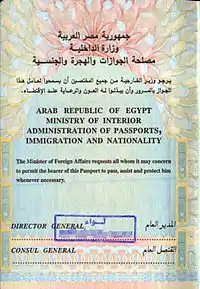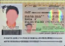 ![]() الغلاف الأمامي للجواز السفر المصري | ||||