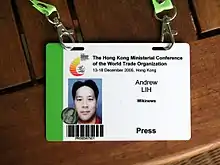 |CitationClass=تم تجاهله (مساعدة) وبالإضافة إلى الصحفيين فإن بعض المدونين يجوز لهم الحصول على تصاريح حضور الأحداث.Vargas, Jose Antonio (May 14, 2006). "What Press Pass? At E3, a Convergence of Card-Carrying Bloggers". The Washington Post. صفحات D01. مؤرشف من الأصل في 28 يناير 2009. اطلع عليه بتاريخ 02 أبريل 2007. الوسيط|CitationClass=تم تجاهله (مساعدة) - "Press Pass". iHollywoodForum. مؤرشف من الأصل في 11 يوليو 2011. اطلع عليه بتاريخ 07 مايو 2007. الوسيط