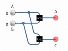 ولو فرضنا A, B, CI المداخل، فنحصل على المجموع si ونرمز له ∑ كما في الدارة التالية:
