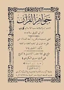 ![]() غلاف طبعة مطبعة كردستان العلمية، سنة 1329 هـ. | |