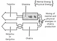 الشاكرا Chakura (チャクラ) هو مصدر الطاقة المطلوب لأداء أغلب أشكال الجوتسو. قبل عصور، كان البشر يولدون دون شاكرا في داخلهم إلا أن سرقت امرأة ثمرة الشجرة المُقدَّسة "الشينجو" وتناولتها فأعطتها طاقة الشاكرا، وتمكنت بواسطتها من إنهاء الحرب في زمنها. ابنها، حكيم المسارات الستة كان قد ولد بشاكرا طبيعيًّا.