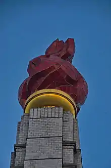![]() شعلة ترمز إلى أيديولوجية "جوتشي" في الجزء العلوي من برج "جوتشي" في بيونغ يانغ | |