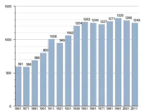 في سنة 1861 بلغ عدد السكان 591 نسمة، وتطور العدد ليصل في سنة 2011 لـ 1٬249 نسمة.