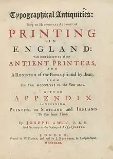 جوزيف أميس (بالإنجليزية: Joseph Ames) (23 يناير 1689 – 7 أكتوبر 1759) مفهرس وأثري إنجليزي، كتب كتابًا أرّخ فيه للطباعة في إنجلترا بين سنتي 1471-1600م بعنوان الآثار المطبعية أصدره سنة 1749م. من غير المؤكد ماذا كانت حرفته، أكان يتاجر مع السفن التي ترسو في الموانيء أم صانع نماذج أم تاجر حديد؟. ورغم عدم تلقّيه تعليمًا عاليًا، إلا أنه لمع في مجال التجارة واقتناء الكتب النادرة والآثار.[5]