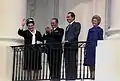 بلجيكا الملك بودوان الأول، ويلفريد مارتنز (رئيس الوزراء)، هنري سيمونيه (وزير الخارجية)
