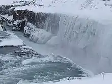 أخدود شلال غولفوس في الشتاء; تكوّن جليد من تراكم قطرات الماء على الناحية المواجهة للمنحدر الثاني.