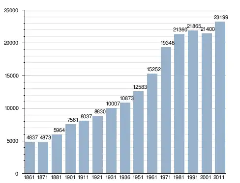 في سنة 1861 بلغ عدد السكان 4٬837 نسمة، وتطور العدد ليصل في سنة 2011 لـ 23٬199 نسمة.