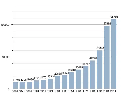 في سنة 1861 بلغ عدد السكان 10٬749 نسمة، وتطور العدد ليصل في سنة 2011 لـ 108٬793 نسمة.