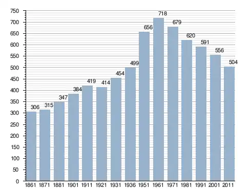 في سنة 1861 بلغ عدد السكان 306 نسمة، وتطور العدد ليصل في سنة 2011 لـ 504 نسمة.