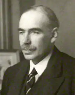 جون ماينارد كينز، وُلد في 5 يونيو 1883 في كامبريدج وتوفي في 21 أبريل 1946 بقرية فيرل (Firle). اقتصادي، موظف رفيع المستوى، وكاتب بريطاني ذو شهرة عالمية. فهو مؤسس الاقتصاد الكلي الكينزي.[lower-alpha 1][lower-alpha 2] ومن أعماله استُخلص الاقتصاد الكينزي، الاقتصاد الكينزي الجديد، والكينزية الجديدة أو ما بعد الكينزية. ونظرًا لعظم شأنه كأحد أكثر المنظرين الاقتصاديين تأثيرًا في القرن العشرين[16]، تولي العديد من المناصب الاستشارية الرسمية وغير الرسمية للعديد من الساسة، وكان من الشخصيات الرئيسية باتفاقية بريتون وودز، من بعد الحرب العالمية الثانية.