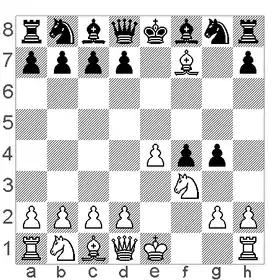 - +1e4 e5 2.f4 exf4 3.Nf3 g5 4.Bc4 g4 5.Bxf7 هذا التفرع في غامبت الملك يدعة غامبت لولي