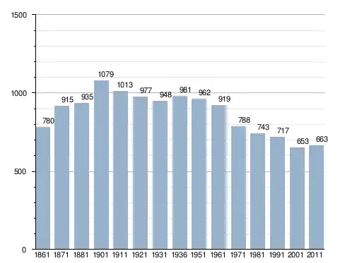 في سنة 1861 بلغ عدد السكان 780 نسمة، وتطور العدد ليصل في سنة 2011 لـ 663 نسمة.