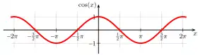 ![]() تمثيل دالة جيب التمام في جملة الإحداثيات الديكارتيّة تمثيل دالة جيب التمام في جملة الإحداثيات الديكارتيّة | |