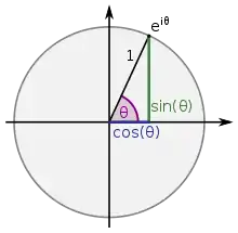 من تلك الصيغ (صيغ أويلر)، يمكن كتابة دالة الجيب على هذا الشكل: