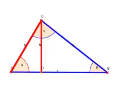 بواسطة تعريف جيب الزاوية يمكن حساب الارتفاع في المثلث ABC بالمتر حيث: