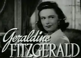 جيرالدين فيتزجيرالد (بالإنجليزية: Geraldine Fitzgerald) (و. 1913 – 2005 م) هي مغنية، وممثلة مسرحية، وممثلة أفلام، وممثلة تلفزيونية، ومخرجة مسرحية من الولايات المتحدة، وجمهورية أيرلندا، ولدت في دبلن[11]، توفيت في نيويورك[12]، عن عمر يناهز 92 عاماً، بسبب مرض آلزهايمر.