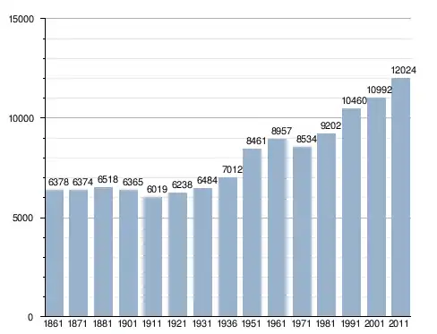 في سنة 1861 بلغ عدد السكان 6٬378 نسمة، وتطور العدد ليصل في سنة 2011 لـ 12٬024 نسمة.