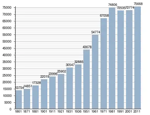 في سنة 1861 بلغ عدد السكان 13٬754 نسمة، وتطور العدد ليصل في سنة 2011 لـ 75٬668 نسمة.
