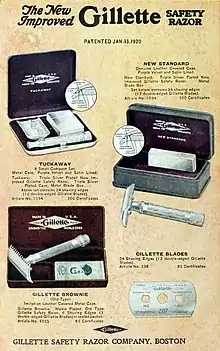 |CitationClass=تم تجاهله (مساعدة) - Gillette, King Camp (February 1918). "Origin of the Gillette Razor". The Gillette Blade. Boston: Gillette Safety Razor Company. الوسيط