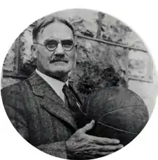 جيمس نايسميث (6 نوفمبر 1861 - 28 نوفمبر 1939) مدرس لياقة بدنية كندي أميركي[2] ومعالج فيزيائي وقس مسيحي ومدرب رياضة ومبتكر.[3] اخترع لعبة كرة السلة في سن الثلاثين عام 1891. كتب «كتاب قوانين كرة السلة الأصلي» وأسس برنامج كرة سلة جامعة كانساس.[4] عاش نيسميث ليرى تبني كرة السلة بصفتها رياضة معترفًا بها في الأولمبياد عام 1904 وعلى أنها حدث رسمي في الألعاب الأولمبية الصيفية في برلين عام 1936، وشهد أيضًا ولادة دورة ألعاب الدعوة الوطنية عام 1938 ودورة ألعاب اتحاد الجامعات الرياضي عام 1939. ولد وترعرع في مزرعة بالقرب من ألمونتي، في أونتاريو، ودرس التربية الرياضية في جامعة مكغيل في مونتريال قبل أن ينتقل إلى الولايات الأميركية، حيث صمم لعبة كرة السلة في أواخر 1891 بينما كان يُعلّم في مدرسة تدريب جمعية الشبان المسيحية في سبرينغفيلد، ماسوشيستس. وبعد سبع سنوات من اختراعه للعبة كرة السلة، حصل على شهادة في الطب في دينيفر عام 1898، ثم جاء إلى جامعة كانساس، [5]وأصبح لاحقًا المدرب والمدير الرياضي لجايهوكس كانساس. وخلال عمله مدربًا في كانساس، درب نايسميث فوغ ألين، الذي أصبح لاحقًا مدرب كانساس لمدة 39 موسم، مبتدئًا مسيرة تدريب مرموقة طويلة.[6] تابع ألين تدريب أبطال مثل أدولف روب ودين سميث وغيرهم ممن قاموا بأنفسهم بتدريب العديد من اللاعبين البارزين والمدربين المستقبليين.[7] على الرغم من تدريبه للموسم الأخير في عام 1907، ما زال نايسميث المدرب الوحيد بسجل خاسر في تاريخ كرة السلة للرجال في كانساس.