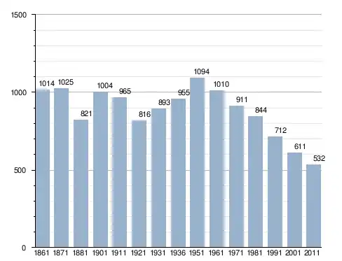 في سنة 1861 بلغ عدد السكان 1٬014 نسمة، وتطور العدد ليصل في سنة 2011 لـ 532 نسمة.