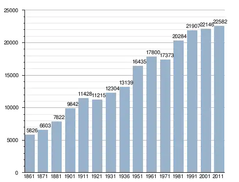 في سنة 1861 بلغ عدد السكان 5٬826 نسمة، وتطور العدد ليصل في سنة 2011 لـ 22٬582 نسمة.