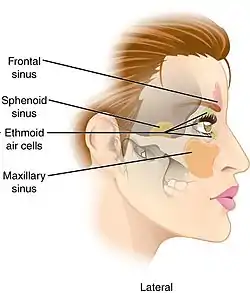![]() مخطط جانبي للجيوب الجانبية الأنفية مخطط جانبي للجيوب الجانبية الأنفية | |